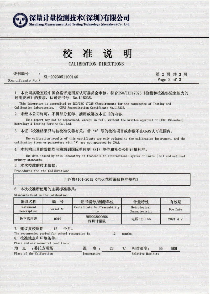 檢測(cè)儀器報(bào)告證書:電火花檢測(cè)儀jg-802